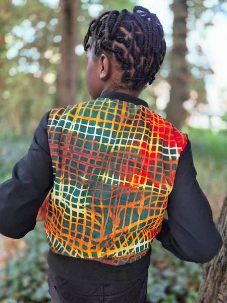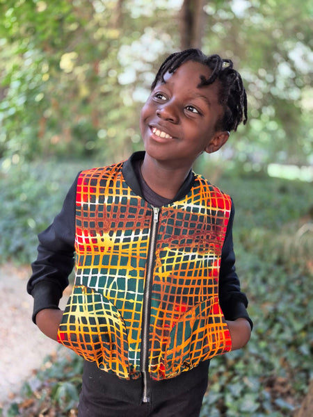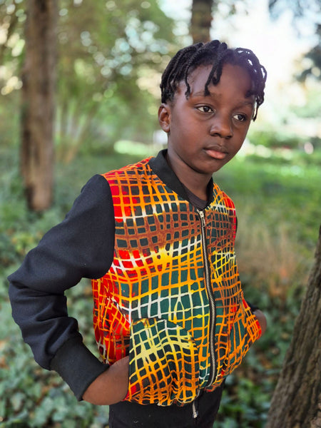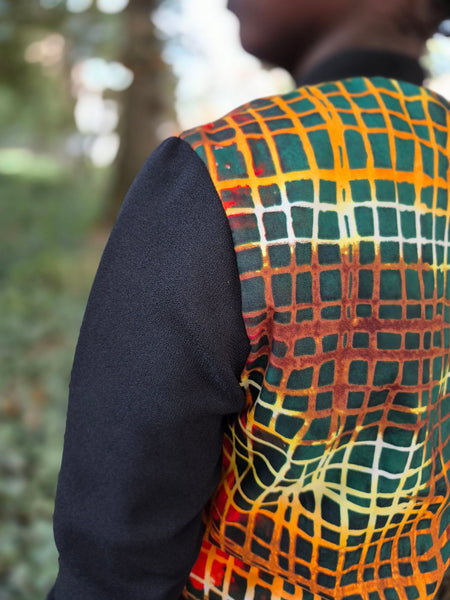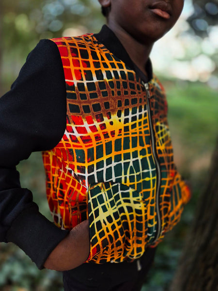 - Veste, style bomber, en tissu wax                                                                                                        -Manches en crêpe de polyester