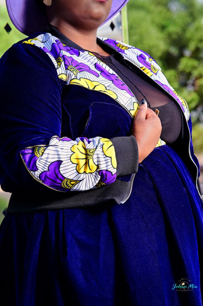 - Fermeture zip sur le devant, le long du bomber                                                              empiecement devant en tissu wax