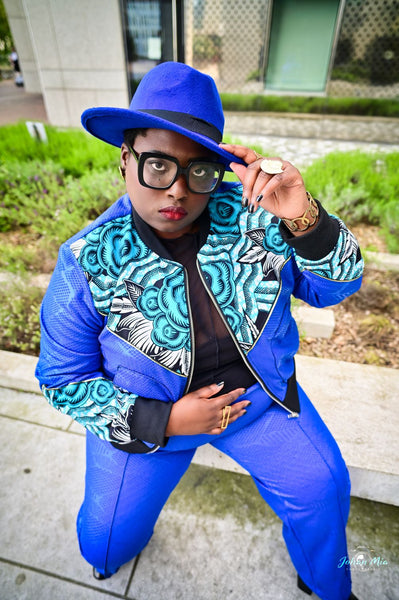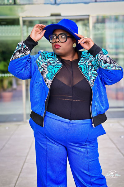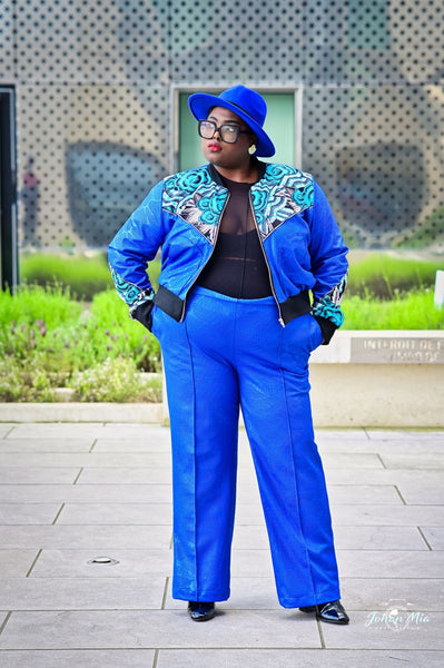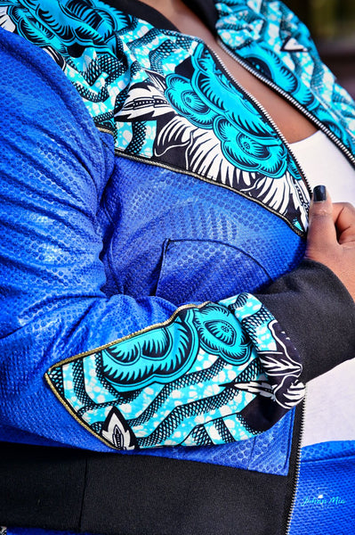 - Fermeture zip sur le devant, le long du bomber                                                              empiecement devant en tissu wax
