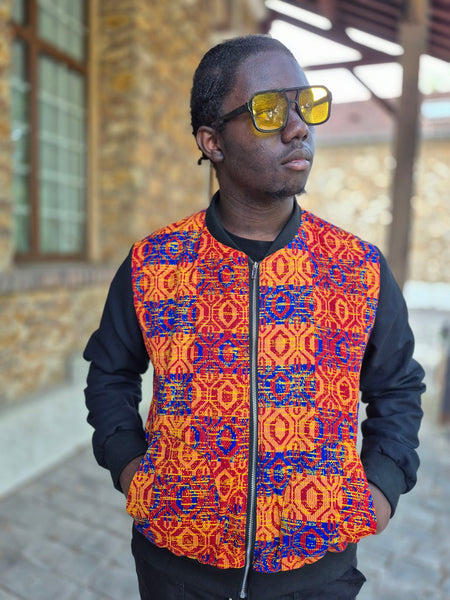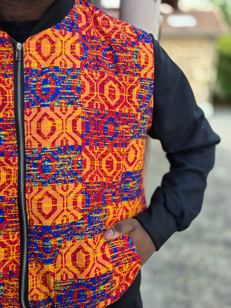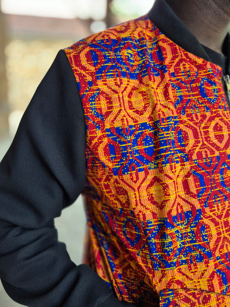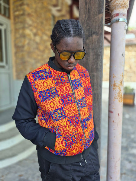 - Veste, style bomber, en tissu wax                                                                                                        -Manches en crêpe de polyester